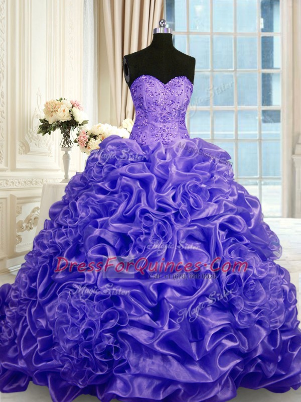 Fancy Purple Sleeveless Beading and Pick Ups Lace Up Quince Ball Gowns