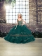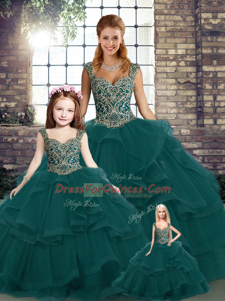 Flare Peacock Green Sleeveless Floor Length Beading and Ruffles Lace Up Sweet 16 Dresses