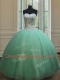 Floor Length Apple Green Quinceanera Dresses Tulle Sleeveless Beading