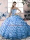 Glamorous Ball Gowns Sleeveless Blue Ball Gown Prom Dress Brush Train Lace Up