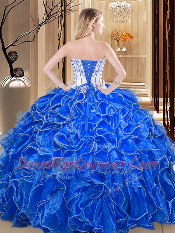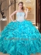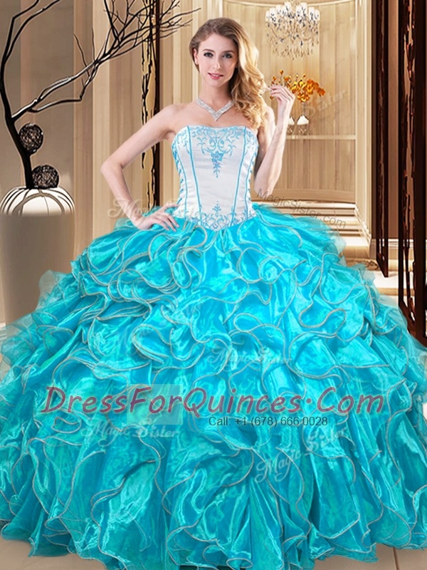 Glamorous Floor Length Teal Sweet 16 Quinceanera Dress Strapless Sleeveless Lace Up