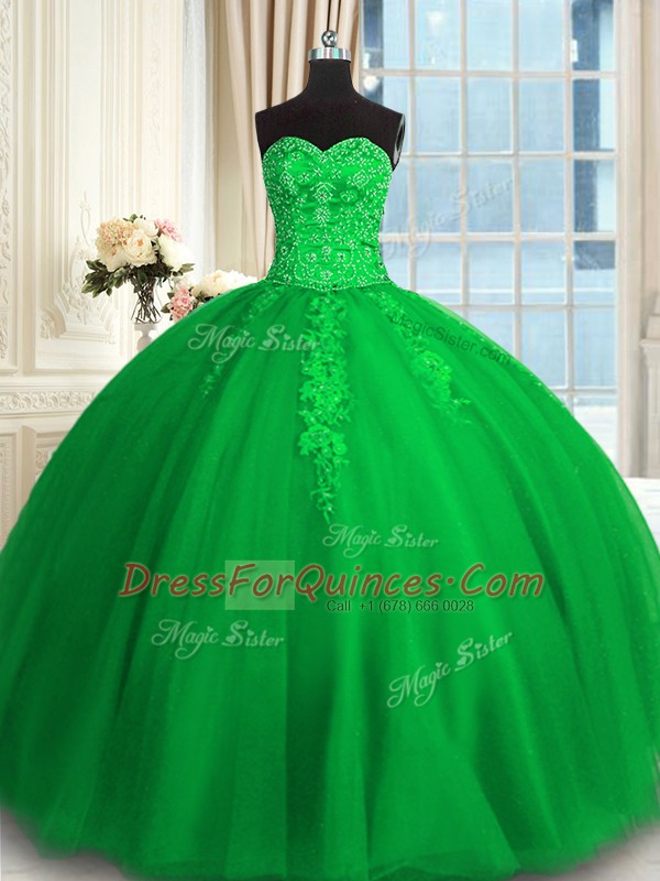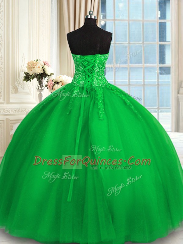 Green Sleeveless Floor Length Appliques and Embroidery Lace Up 15 Quinceanera Dress