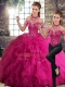 Halter Top Sleeveless Quinceanera Dress Floor Length Beading and Ruffles Fuchsia Tulle