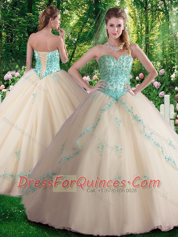 Hot Sale A Line Appliques Sweet 16 Dresses in Champagne