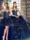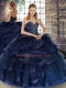 Latest Sleeveless Floor Length Beading and Ruffles Lace Up Sweet 16 Quinceanera Dress with Navy Blue