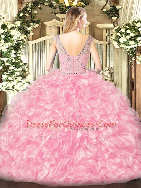 Lilac Tulle Zipper Bateau Sleeveless Floor Length Quinceanera Dress Beading and Ruffles