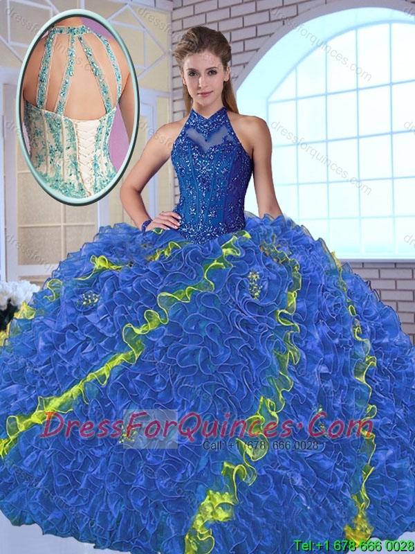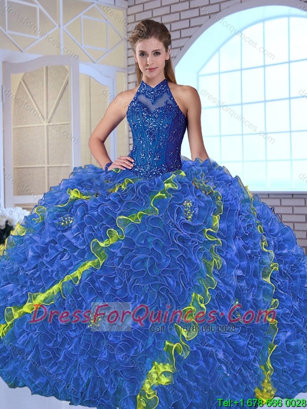 Perfect High Neck Appliques Sweet 16 Dresses in Multi Color