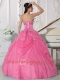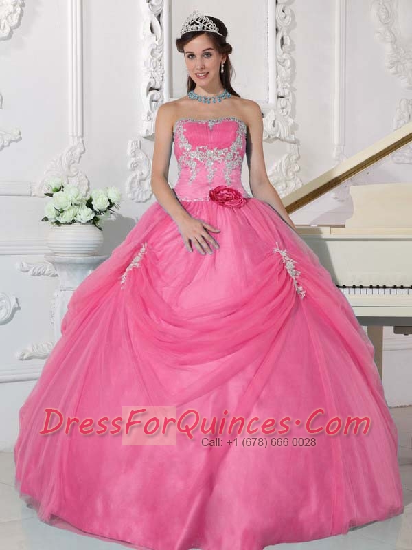 Pink Ball Gown Strapless Pretty Quinceanera Dresses with Taffeta and Organza Appliques and Hand Made Flower