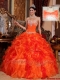 Pretty 2016 Sweetheart Beading Sweet 15 Dresses in Orange