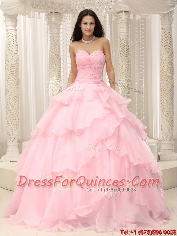 Pretty 2016 Sweetheart Ruffles Quinceanera Dresses in Baby Pink