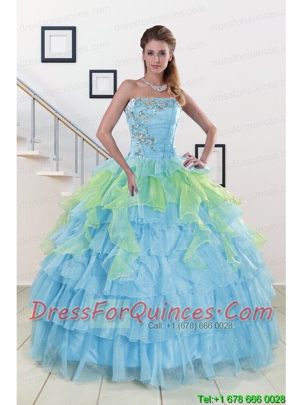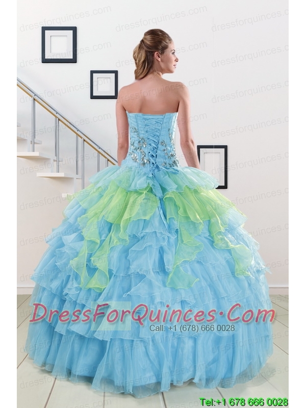 Pretty Beading Strapless Multi Color Quinceanera Dress for 2015