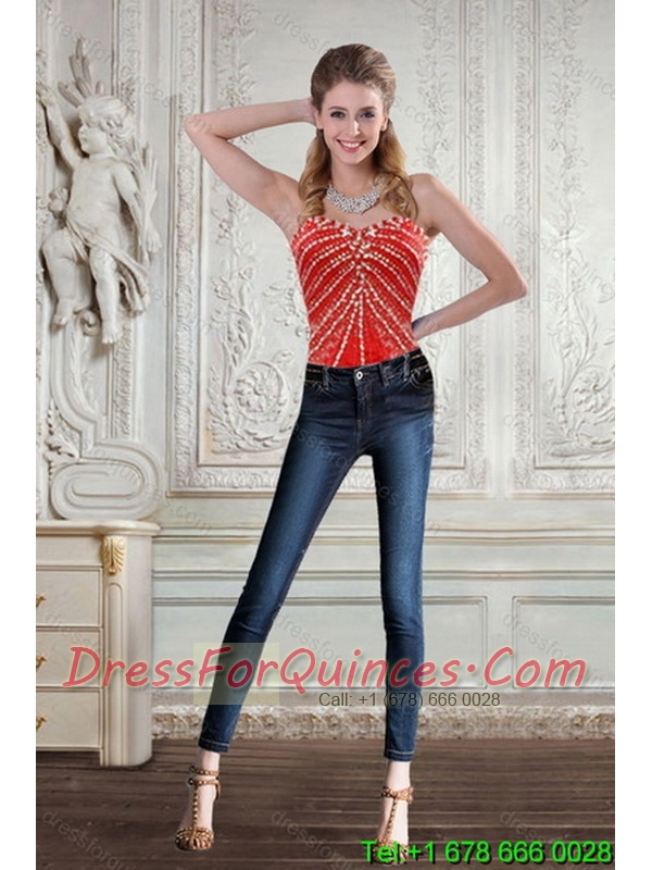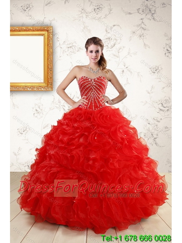 Pretty Red Quince Dresses With Beading and Ruffles for 2015