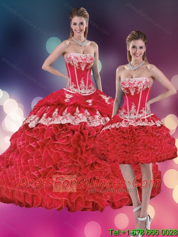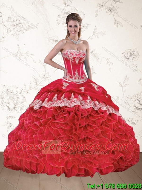 Pretty Red Strapless Appliques Red Quinceanera Dresses