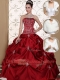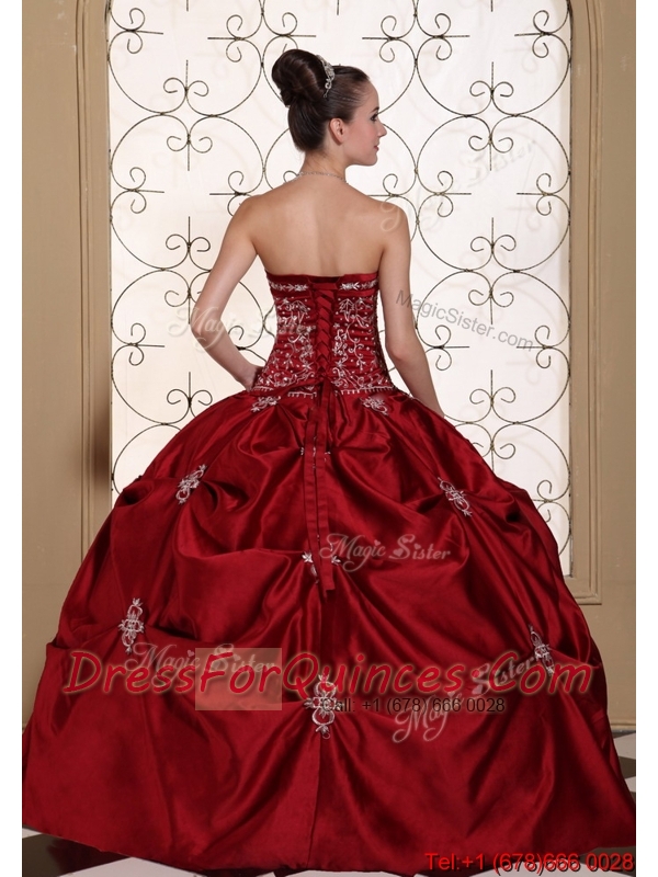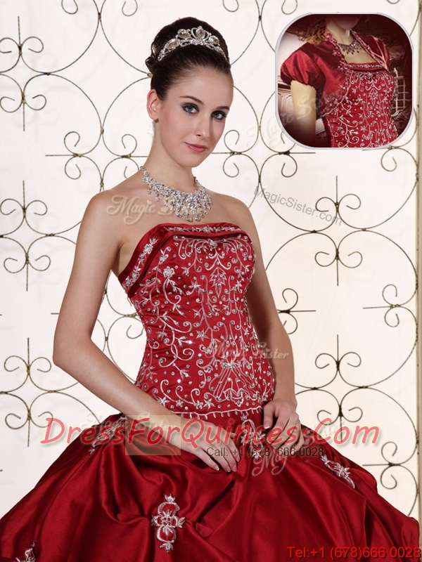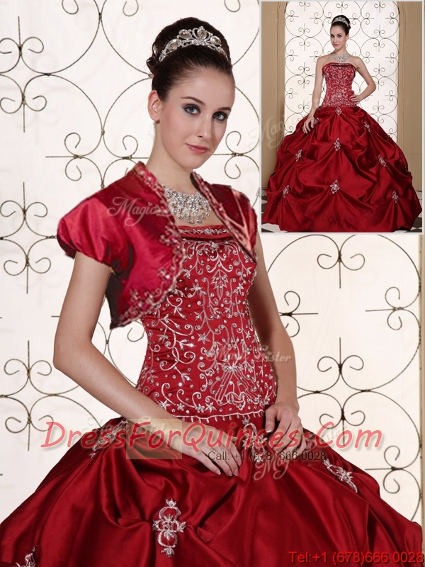 Pretty Strapless Quinceanera Gowns with Embroidery and Pick Ups