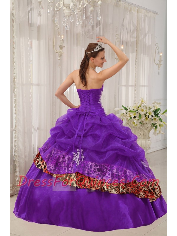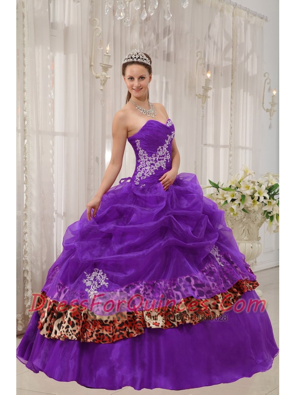 Purple Ball Gown Sweetheart Pretty Quinceanera Dresses with Organza and Zebra or Leopard Appliques