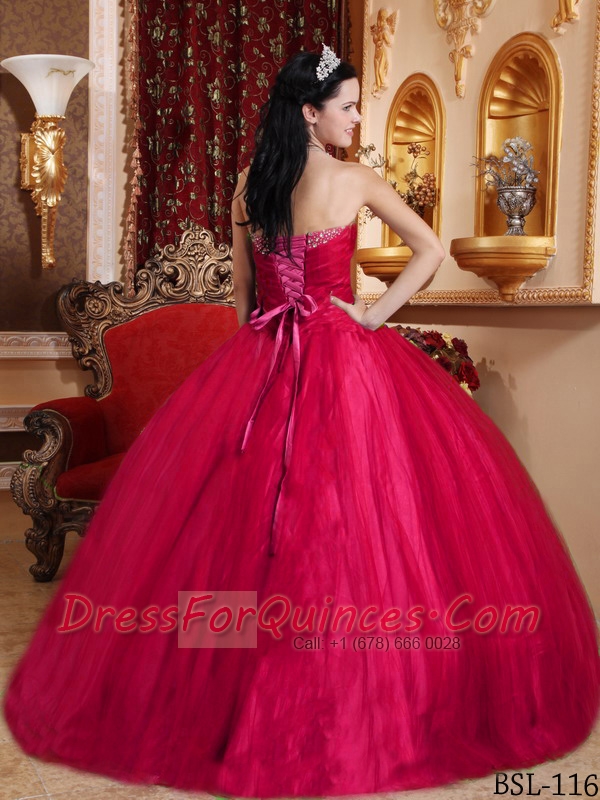 Red Ball Gown Sweetheart Pretty Quinceanera Dresses with Tulle and Tafftea Beading