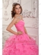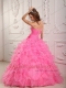 Rose Pink Ball Gown Sweetheart Floor-length Organza Beading Quinceanera Dress