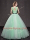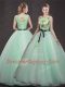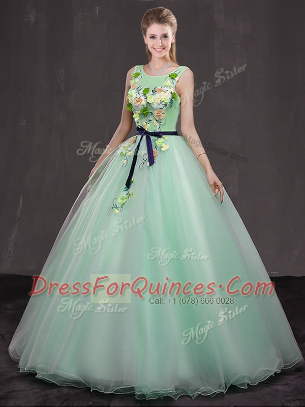 Scoop Floor Length Ball Gowns Sleeveless Apple Green Vestidos de Quinceanera Lace Up