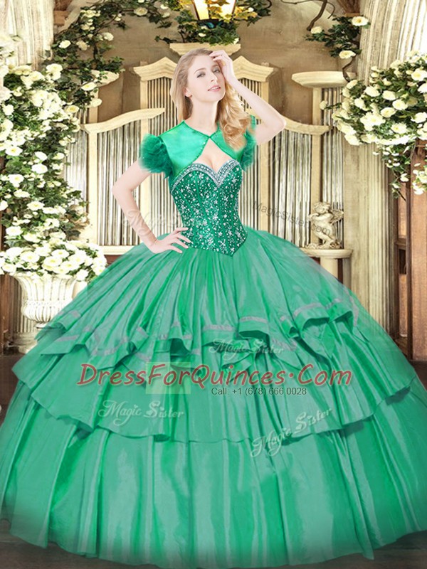 Sleeveless Floor Length Beading and Ruffled Layers Lace Up Quinceanera Dress with Turquoise