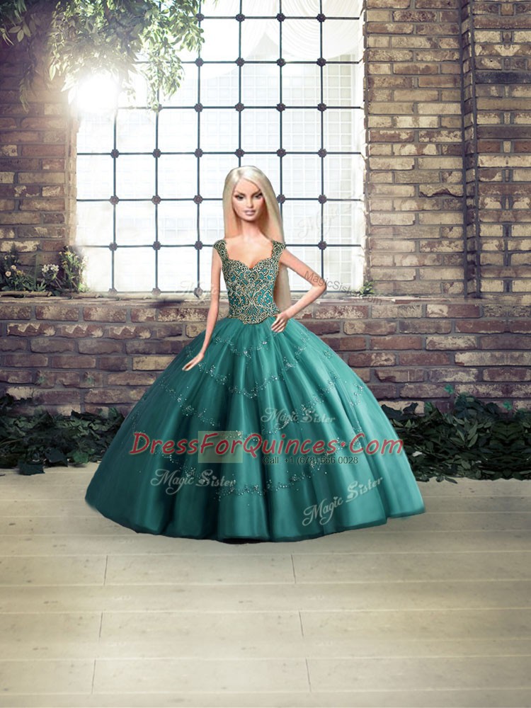 Sleeveless Lace Up Floor Length Beading and Appliques Quinceanera Dress