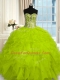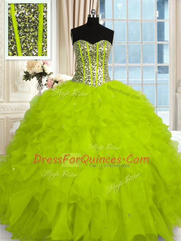 Sleeveless Organza Floor Length Lace Up Quinceanera Gowns in Yellow Green with Beading and Ruffles