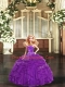 Sophisticated Purple Ball Gowns Tulle Strapless Sleeveless Beading and Ruffles Floor Length Lace Up Sweet 16 Quinceanera Dress