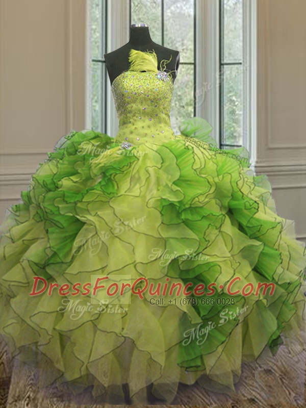 Strapless Sleeveless Vestidos de Quinceanera Floor Length Beading and Ruffles Multi-color Organza