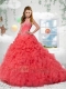 The Most Popular Coral Red Sweetheart Quinceanera Dress with Appliques For 2014