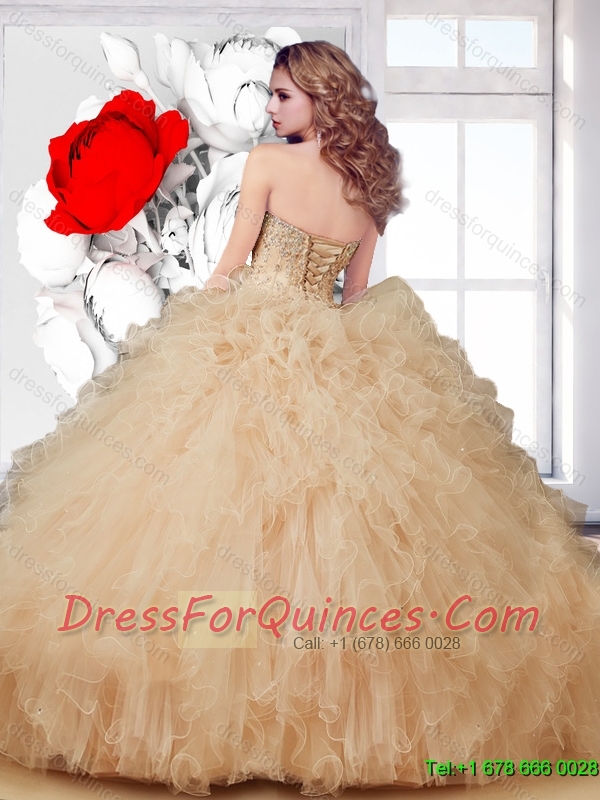 Top Seller Rose Pink 2015 Summer Ball Gown Sweet 16 Dress with Beading and Ruffles