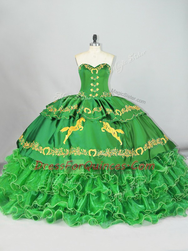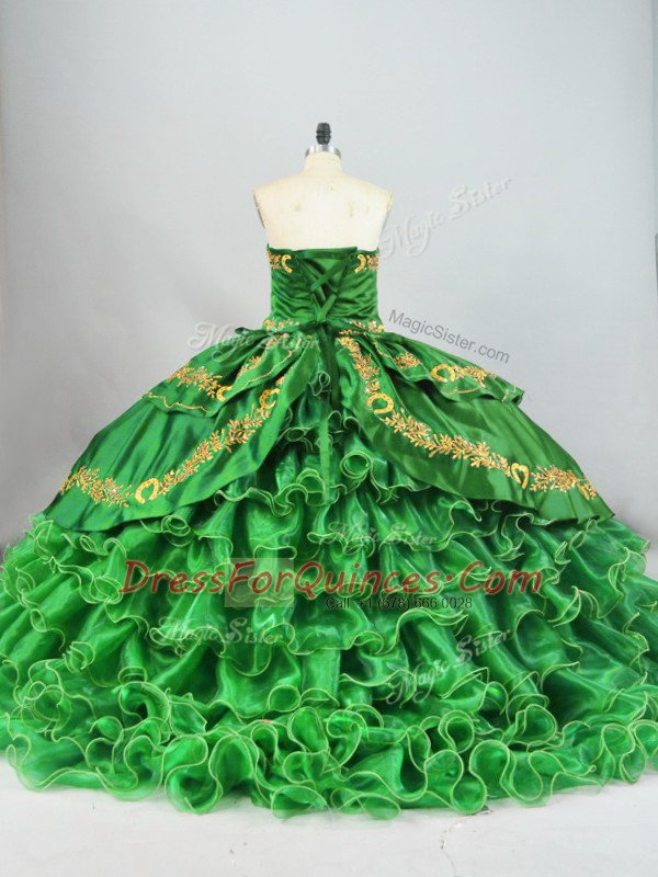 Vintage Ball Gowns Sleeveless Green Quince Ball Gowns Brush Train Lace Up