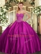 Vintage Fuchsia Sleeveless Beading Floor Length 15 Quinceanera Dress