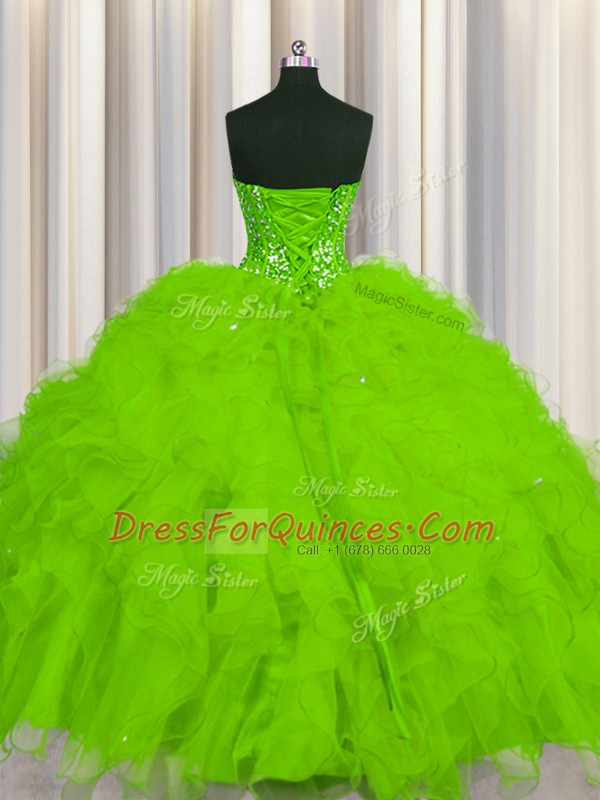 Visible Boning Floor Length Ball Gowns Sleeveless Sweet 16 Dress Lace Up