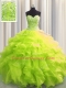Visible Boning Sweetheart Sleeveless Quinceanera Dress Floor Length Beading and Ruffles Yellow Green Organza