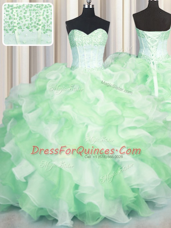 Visible Boning Two Tone Multi-color Ball Gowns Beading and Ruffles 15 Quinceanera Dress Lace Up Organza Sleeveless Floor Length