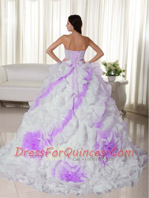 White Ball Gown Sweetheart Court Train Organza Appliques Pretty Quinceanera Dresses