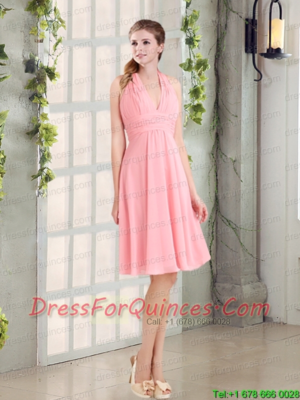 2015 The Brand New Style Halter Empire Chiffon Ruching Bridesmaid Dress