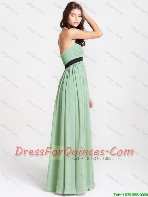 2016 Spring Modern Halter Top Prom Dresses with Ruching and Belt