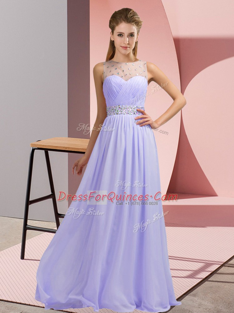 Affordable Floor Length Backless Prom Dresses Lavender for Prom and Party with Beading