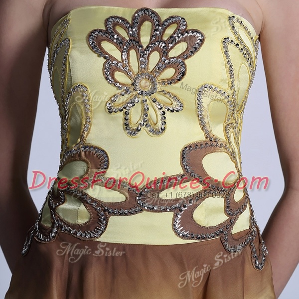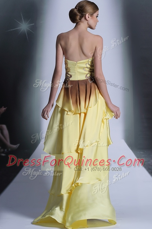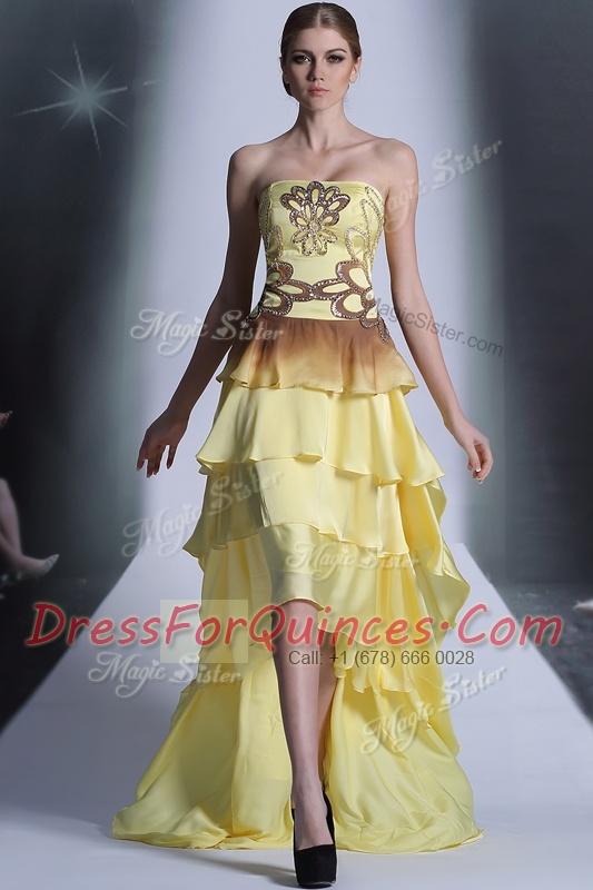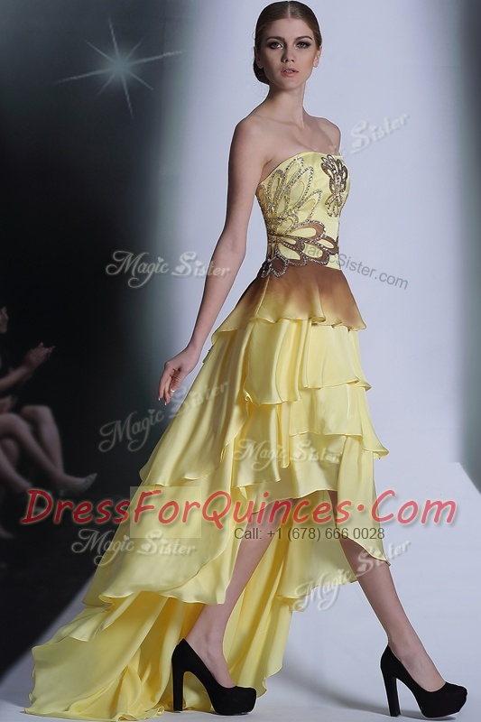 Amazing High Low Empire Sleeveless Light Yellow Evening Dress Zipper