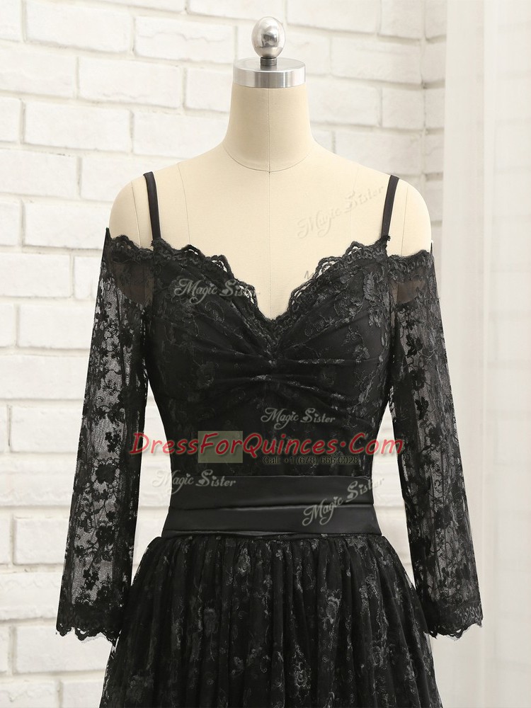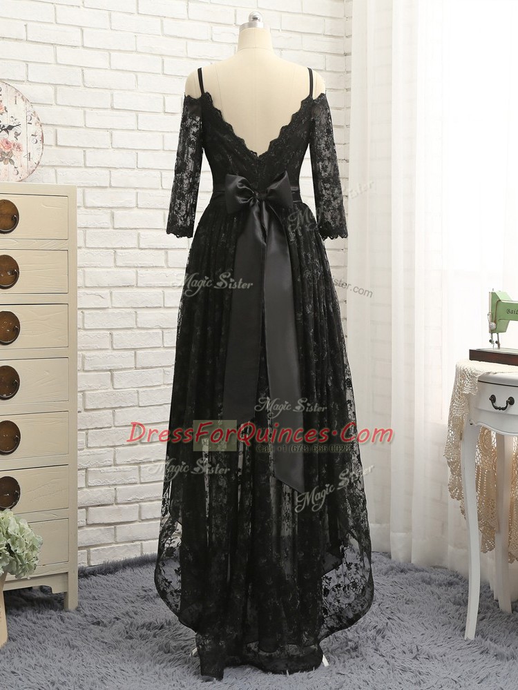 Amazing Lace Half Sleeves High Low Prom Dresses and Lace