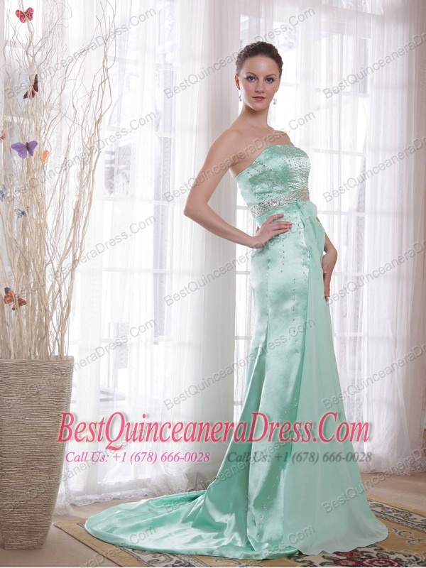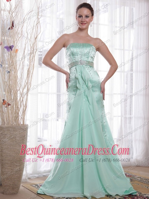Apple Green Column / Sheath Strapless Brush /Sweep Beading Chiffon and Satin Prom / Pageant Dress