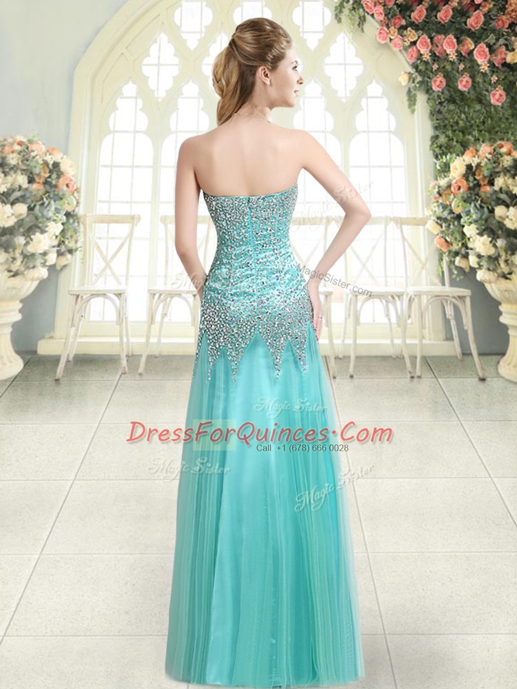 Apple Green Zipper Sweetheart Beading Evening Dress Tulle Sleeveless