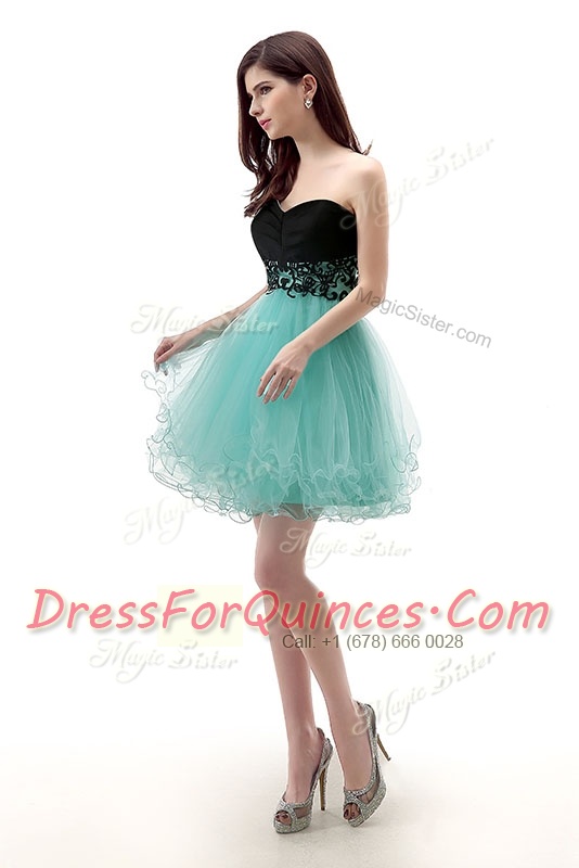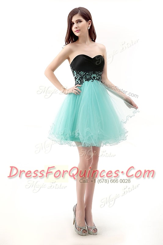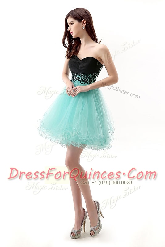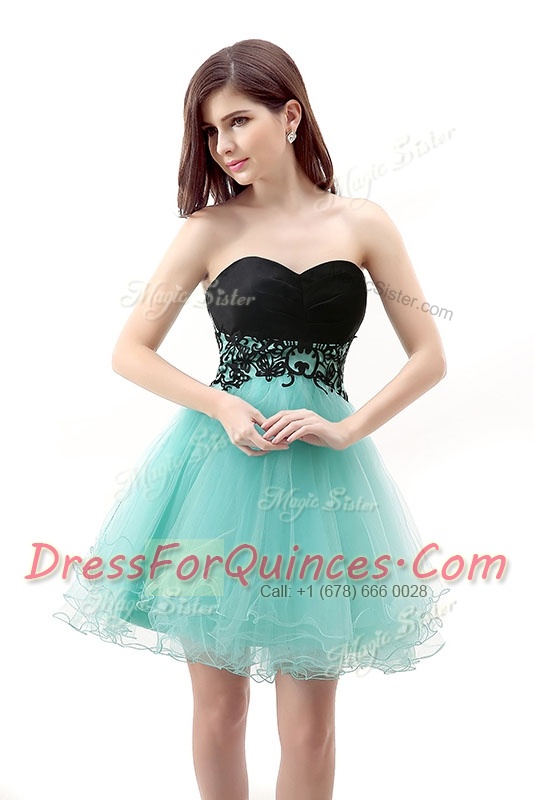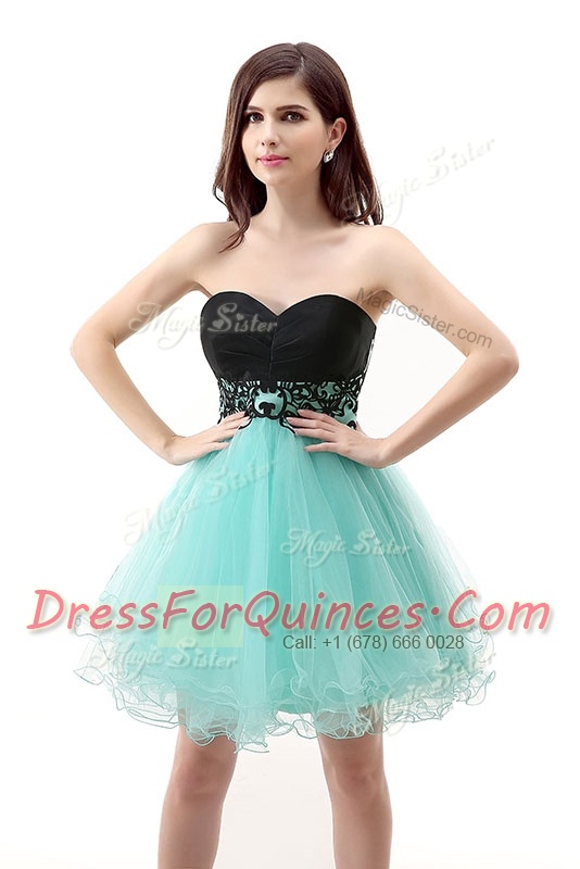 Attractive Blue And Black A-line Sweetheart Sleeveless Tulle Mini Length Zipper Lace Dress for Prom