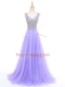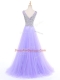 Beading Evening Dress Lavender Zipper Sleeveless Floor Length