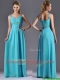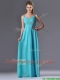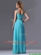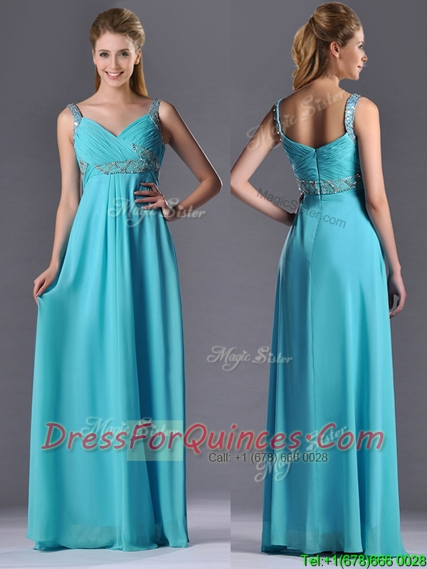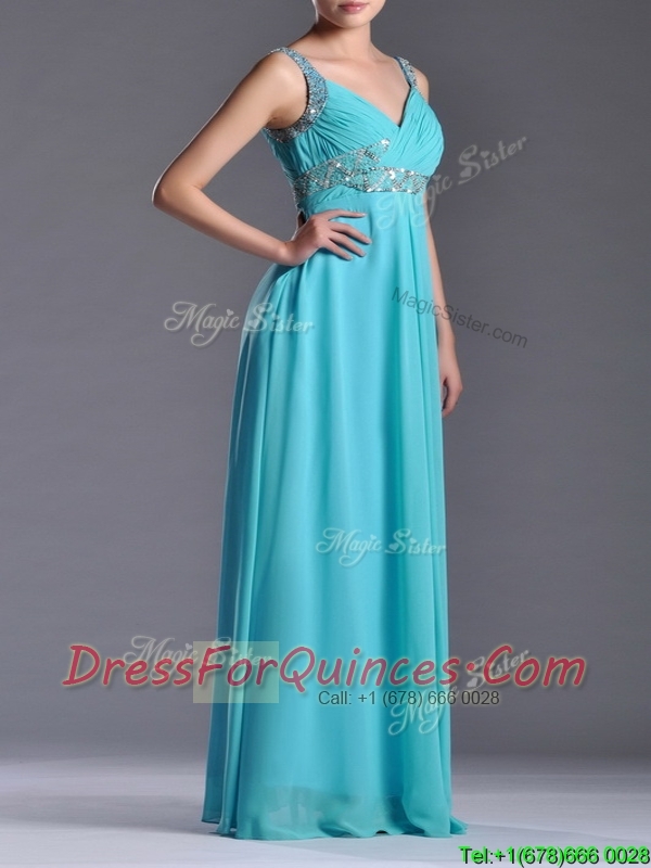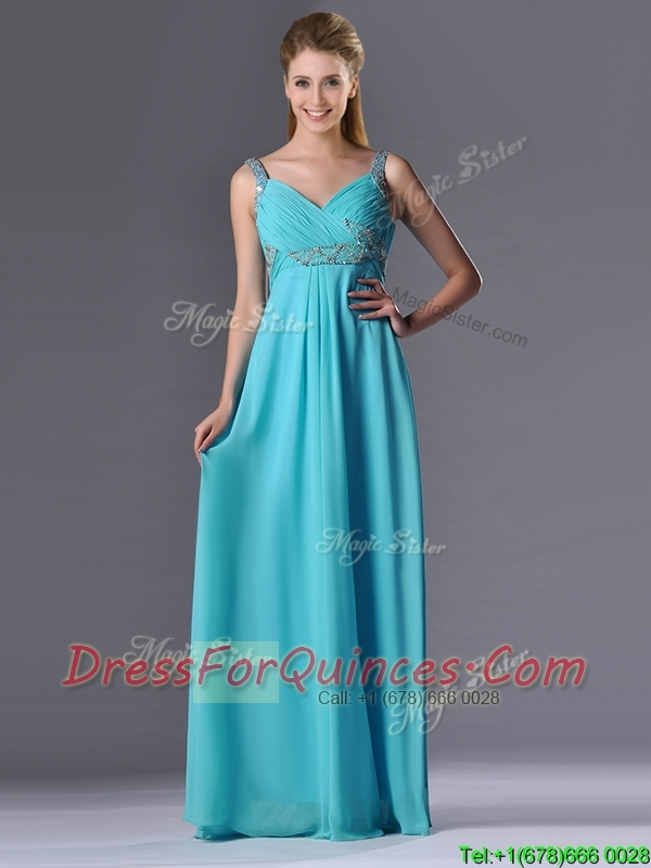 Beautiful Empire Aqua Blue Long Prom Dress with Beading and Ruching