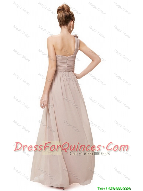 Beautiful Ruched Champagne Prom Dresses with One Shoulder