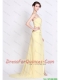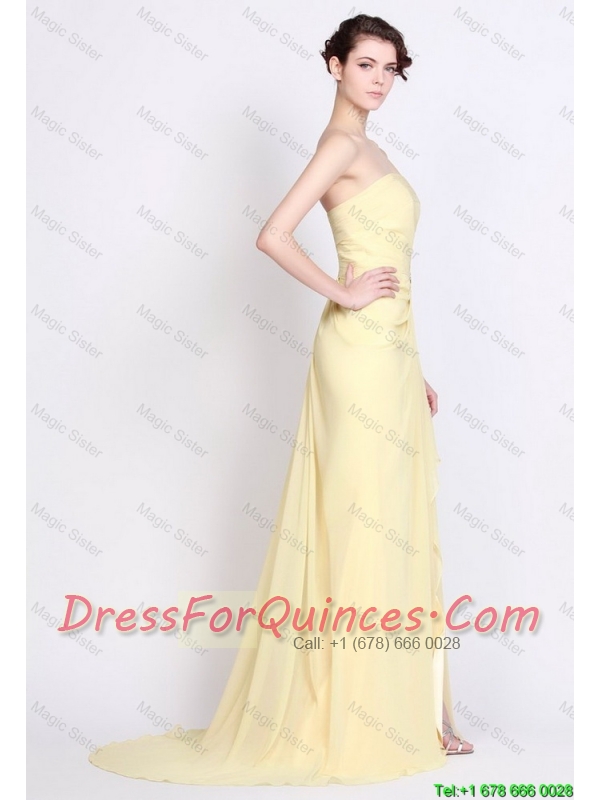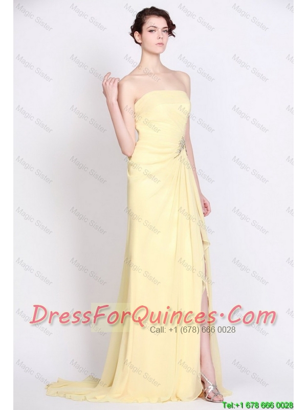 Beautiful Strapless Beaded and High Slit Prom Dresses in Yellow