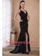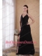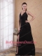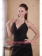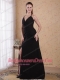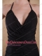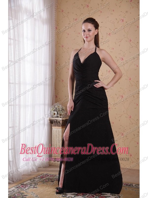 Black Column / Sheath Halter Brush Chiffon Ruch Prom Dress