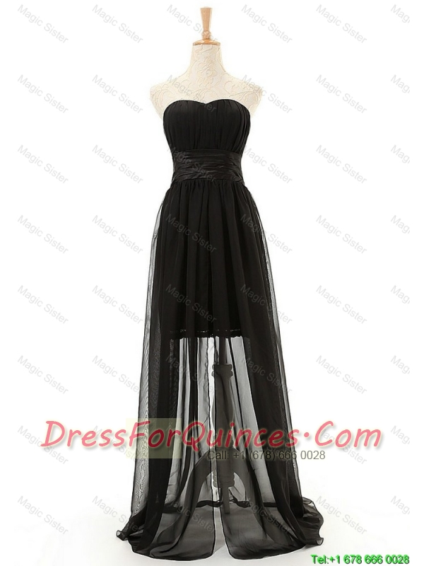Cheap Brand New Sweetheart Belt Long Prom Dresses in Black