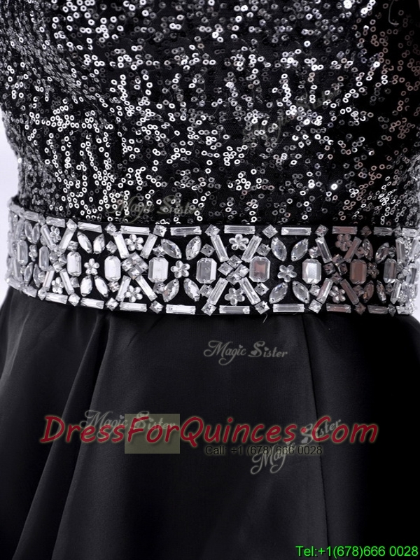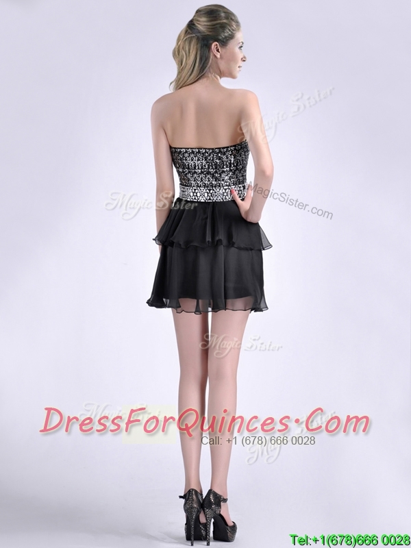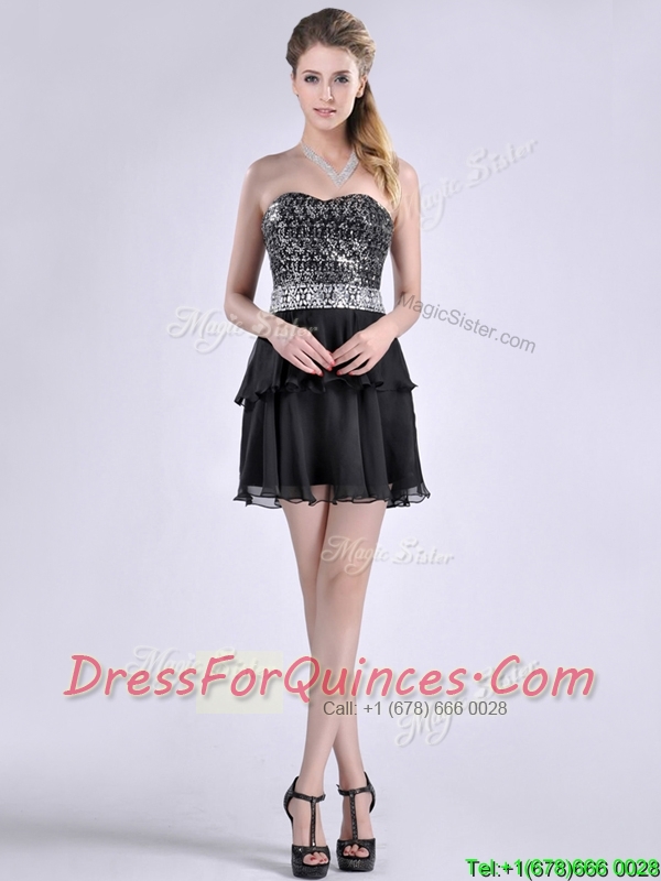 Cheap Sweetheart Black Short Prom Dress in Sequins and Chiffon